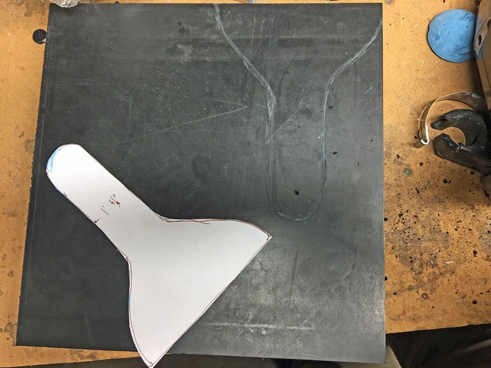 You kind of create a template out of the old hitch in paper or cardboard, then chalk it onto the rubber, scribe it into the block. (Here is a template in PDF format)