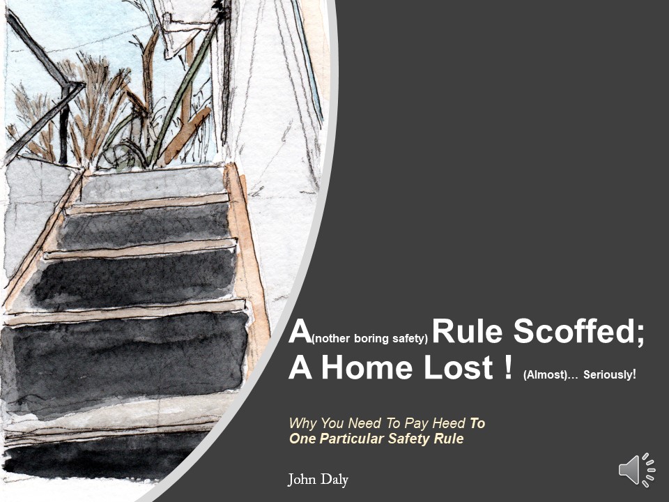 All those safety rules and guidelines (National Safety Council) can seem boring and irrelevant, overkill… like the yada yada of on line terms and conditions pages that most just skip through and click. But skipping on taking safety guidelines seriously will at some point will cause you major problems. This weird tale of events will show how and why to take one of these rules very seriously.