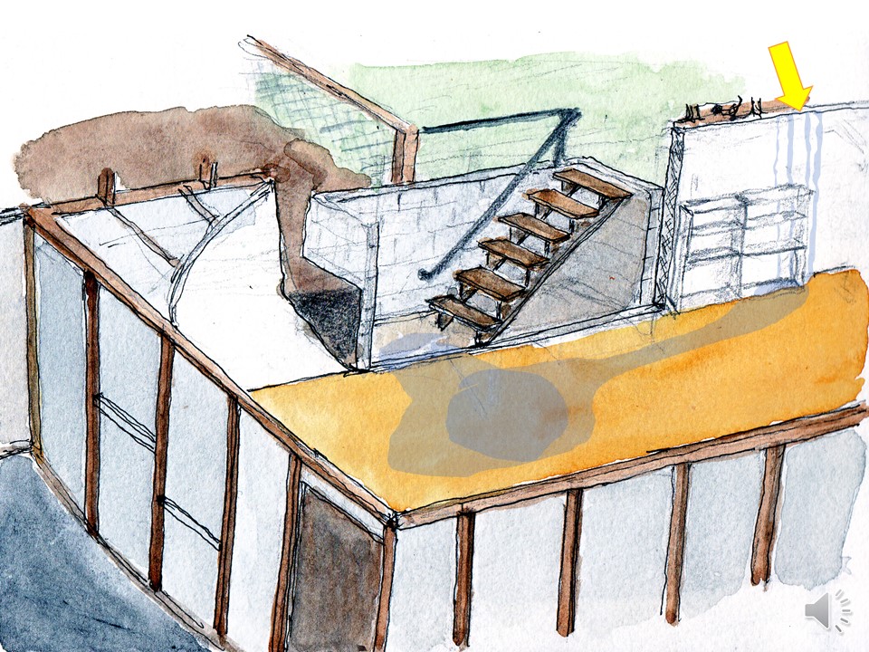 Late at night on July First after a party we were putting things away in the cellar and noticed this growing puddle of water. I guessed it must be coming from the cellar’s recessed entrance.