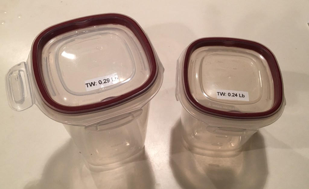 I weighed my containers before hand and labelled them with tare weight, TW.