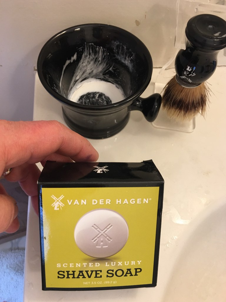 One very successful one involves reverting to the traditional shaving brush, cup and bar of shaving soap instead of aerosol shaving cream containers.