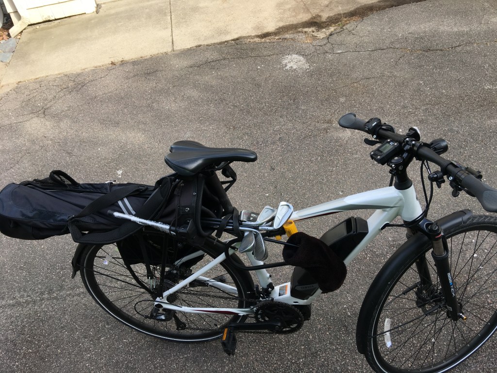 I live 5 minutes away from South Shore Country Club and have a membership. I hate to drive that distance with a car and a golf cart and all. Why add the carbon to the atmosphere for such a short trip? But how can you bike to golf with the cart, clubs, bag, balls etc.?