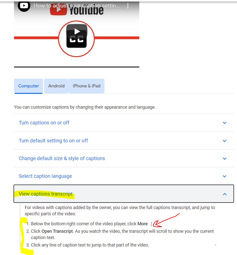 This YouTube set of instructions for transcribing videos from Herman Drost seemed clear at first, but I found his screens and directions — “go to this, pick that item, etc.” bore NO resemblance to what I found on my own screens of Youtube. It could have been dated or out of country? He’s in Australia.