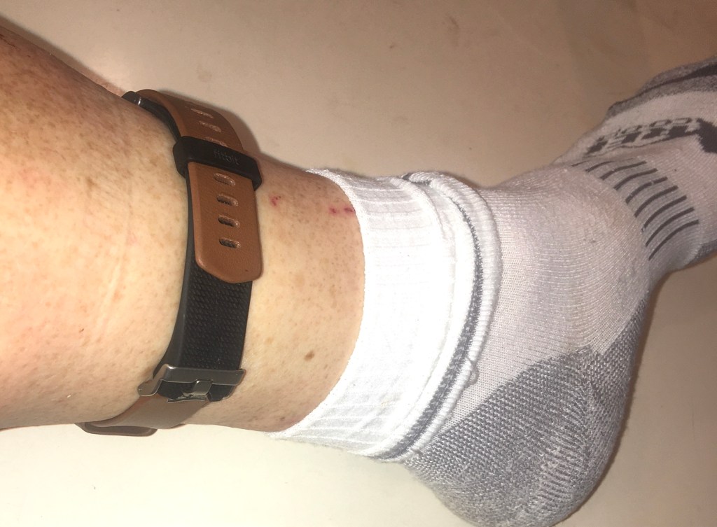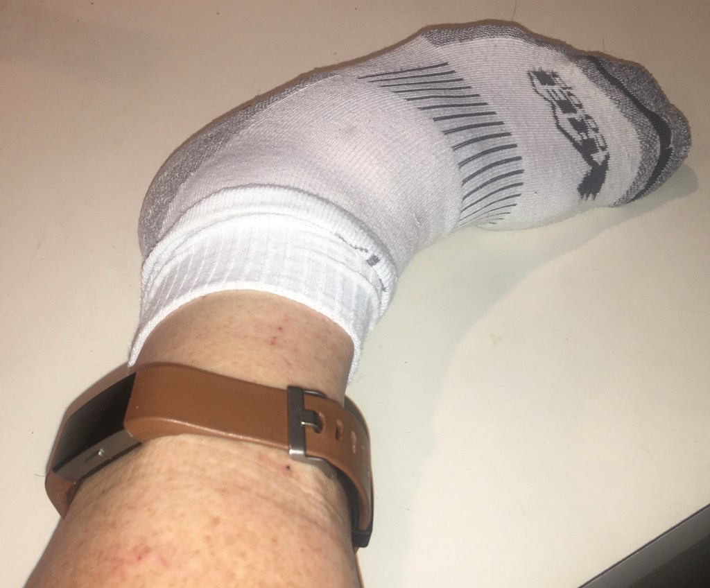 and then fit the expanded band fitbit onto my lower calf above the ankle like so: