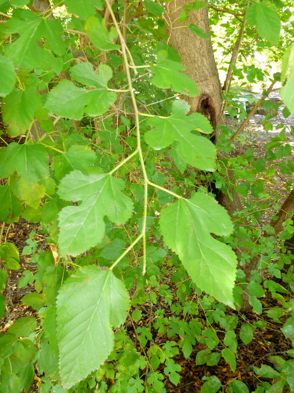 From iNaturalist: “Morus alba, known as white mulberry, is a short-lived, fast-growing, small to medium sized mulberry tree, which grows to 10–20 m tall. The species is native to northern China, and is widely cultivated and naturalized elsewhere….