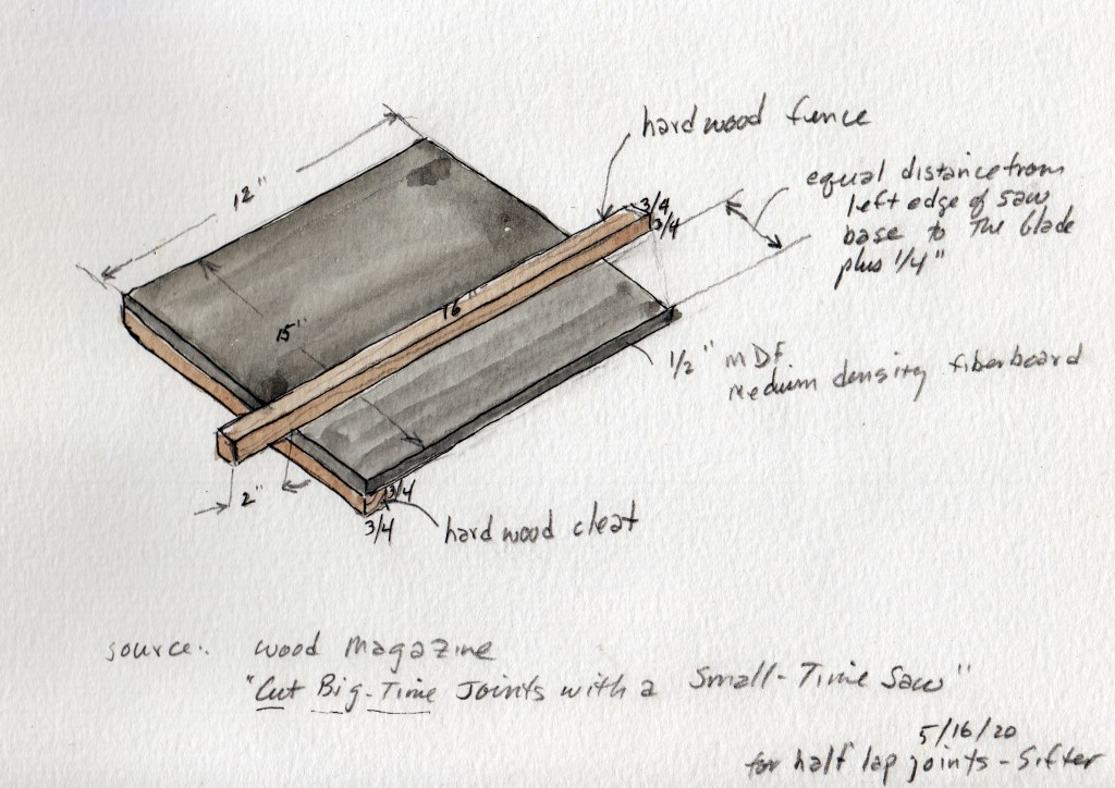 These took time, skill and usually equipment to make, but they were the best way to make good quality frames. I had made a decision to avoid power table saws out of fear of becoming forgetful or careless and losing a finger or worse some day. So, the question was how to cut such precise half laps with a lowly skil saw? The information superhighway once again comes to the rescue in the form of a tailor made solution also from Wood Magazine, “Cut Big-Time Joints with a Small-Time Saw”. The key was to make this cutting guide:
