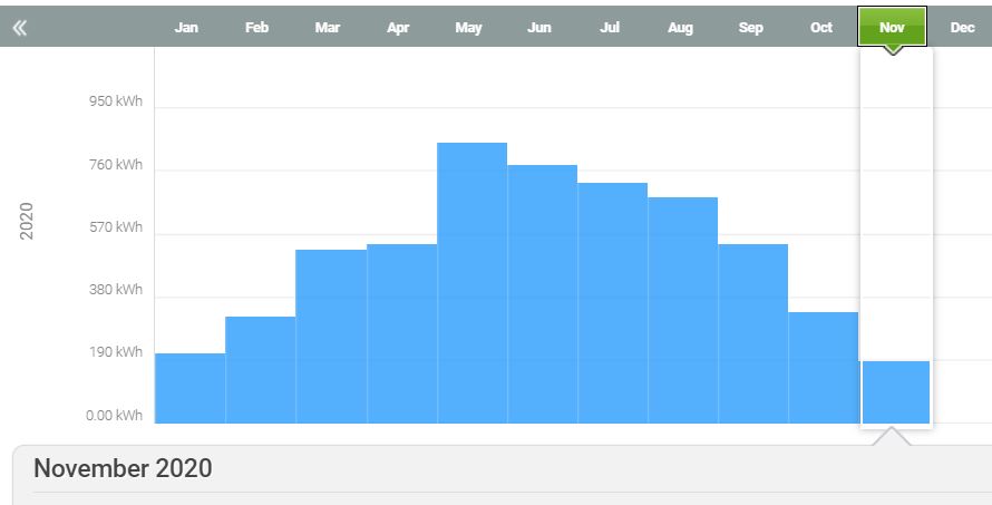 On the one hand the Enphase on line tracker tool shows us all our production in detail. This view shows that we have generated over 5,900 KWh for the 12 months ending on October 19 2020 and we are actually producing more than originally estimated: