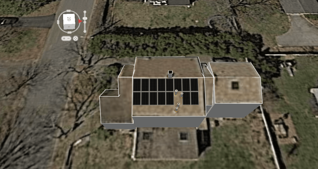 After assessing our annual usage, inspecting the site and evaluating the roof sections’ ages he suggested installing panels on the east side roof as pictured: