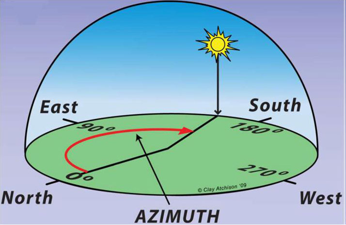 To qualify for rebates in Massachusetts, the proposed mounting area needed to have openness to sunlight (freedom from shade) for at least 80% of the total possible sunlight all year. The azimuth (see explanation below) of the roof section housing the panels needed to point in any direction but north, namely it’s azimuth must fit between 90° (straight east) and 270° (straight west).