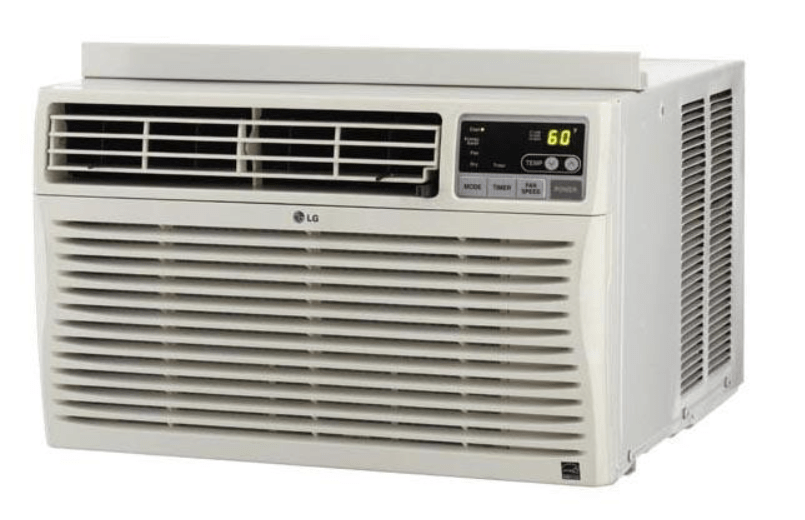 Our downstairs air conditioners weigh a lot, e.g., this LG 12,000 BTU unit…