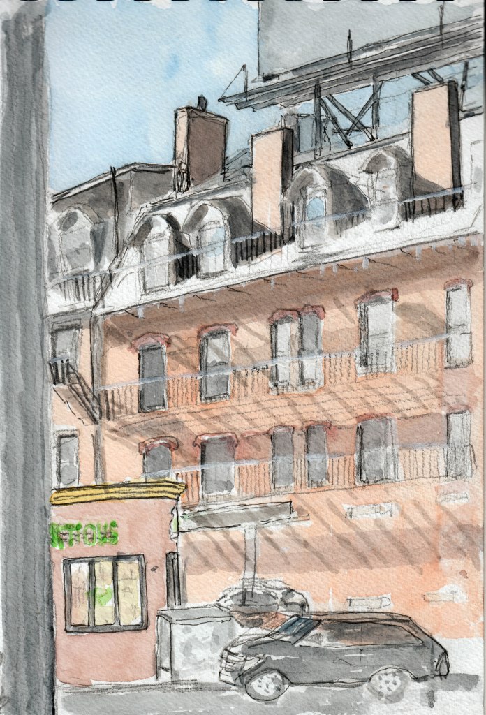 and then turning right to a few others with Mansard roof and fire escapes everywhere.