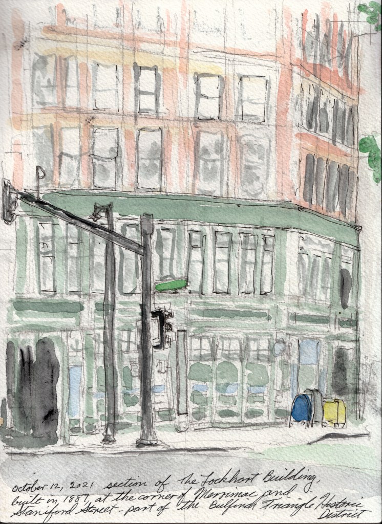 The brick building was the Lockhart Building built in 1887 for a leading wholesaler of coffins and funeral supplies! Amazing. It matches the Victorian Commercial style which the St. Louis MO Preservation Plan explains (as they describe St. Louis’ Merchants Laclede Building, at 408 Olive, a parallel to the Stockwell Building) is…