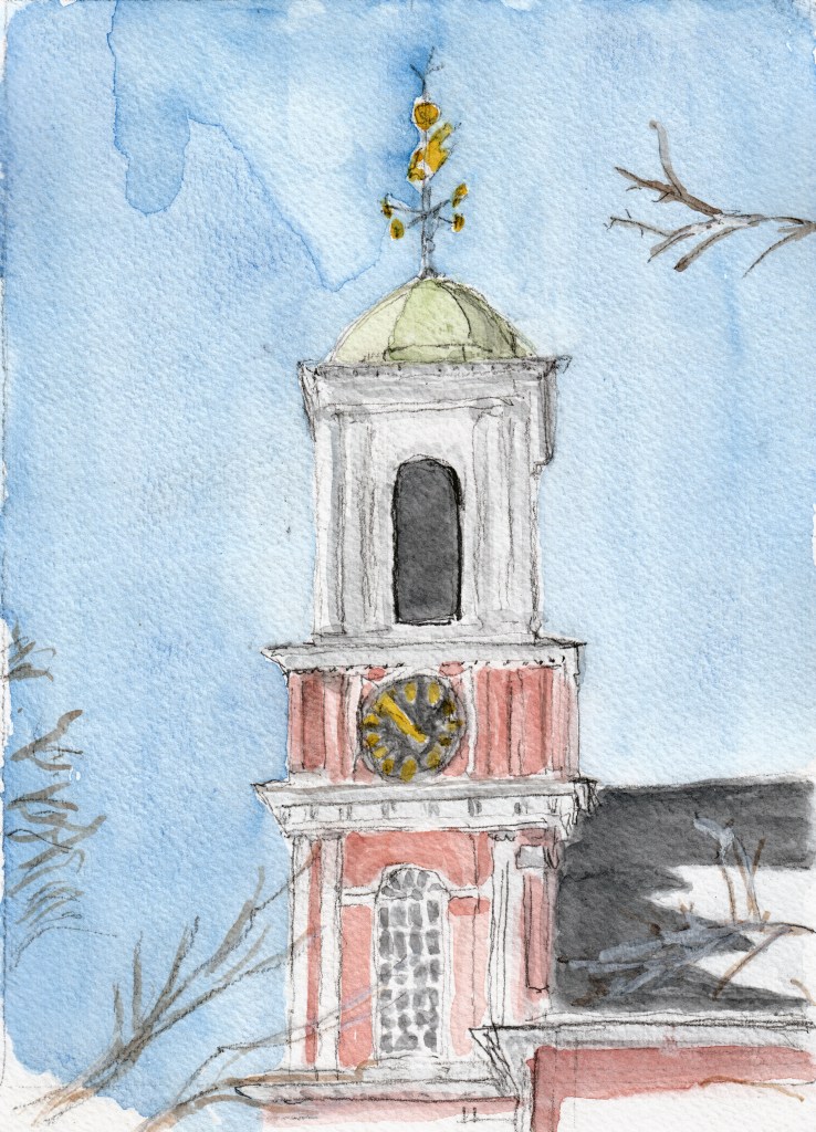 Thus with West Church spire razed, Paul Revere arranged to use the lower but still visible Old North Church for his lantern signals — “one if by land…”