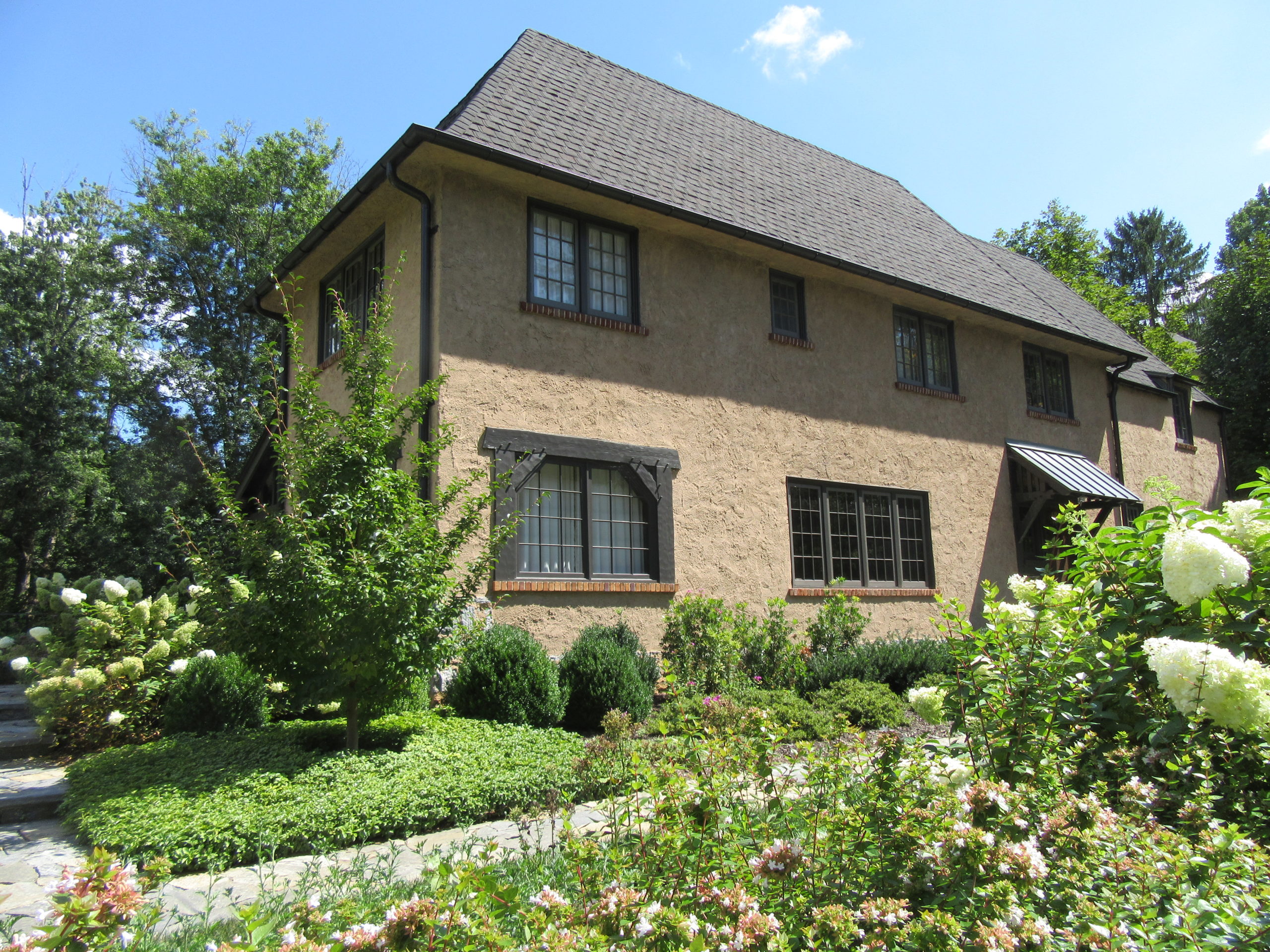 So what in the culture of the time led to this look? According to The Preservation Society of Asheville & Buncombe County, North Carolina. U.S. servicemen serving overseas in WWI saw and greatly appreciated charming European and English villages and cottages. As the 1920s emerged with a robust economy, U.S. builders modeled some new house designs after the English and European cottages and manors. For example Lieutenant Allison C. Clough, a veteran of France, commissioned architect Julius E. Gregory—also a WW1 veteran—to design these two homes.