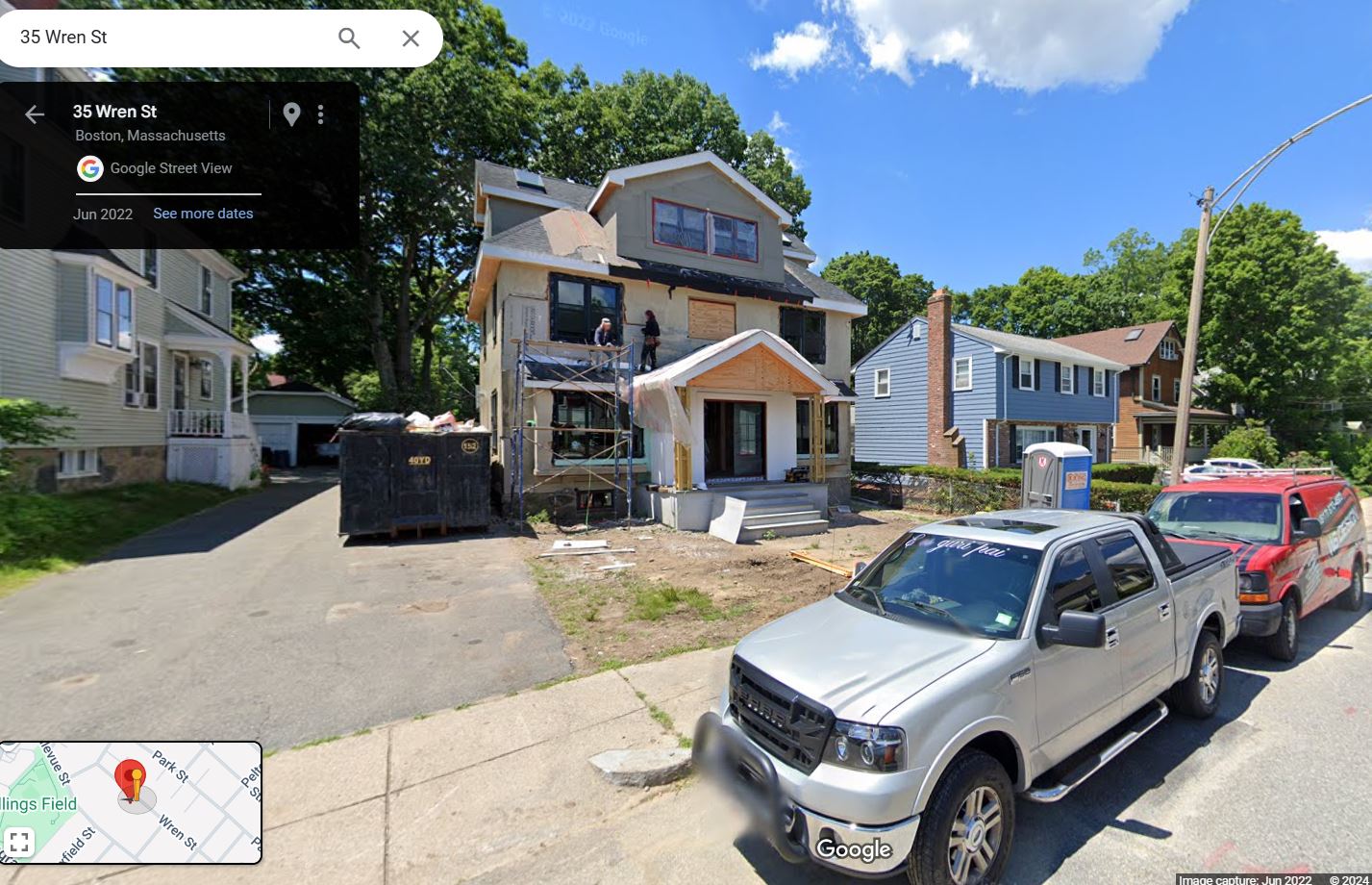 But wait. Two blocks away a the corner of Maxfield and Lagrange, we see a twin sister of 35 Wren. 333 Lagrange continues to grace the neighborhood as it ever did before. (flipped; chimney on left)