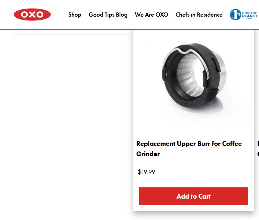But why only the top burr? and not the bottom cone burr? Why only 50% of a solution, OXO? I asked. They offered to replace grinder but never offered the lower burr. So we continued with the “50% Solution”.